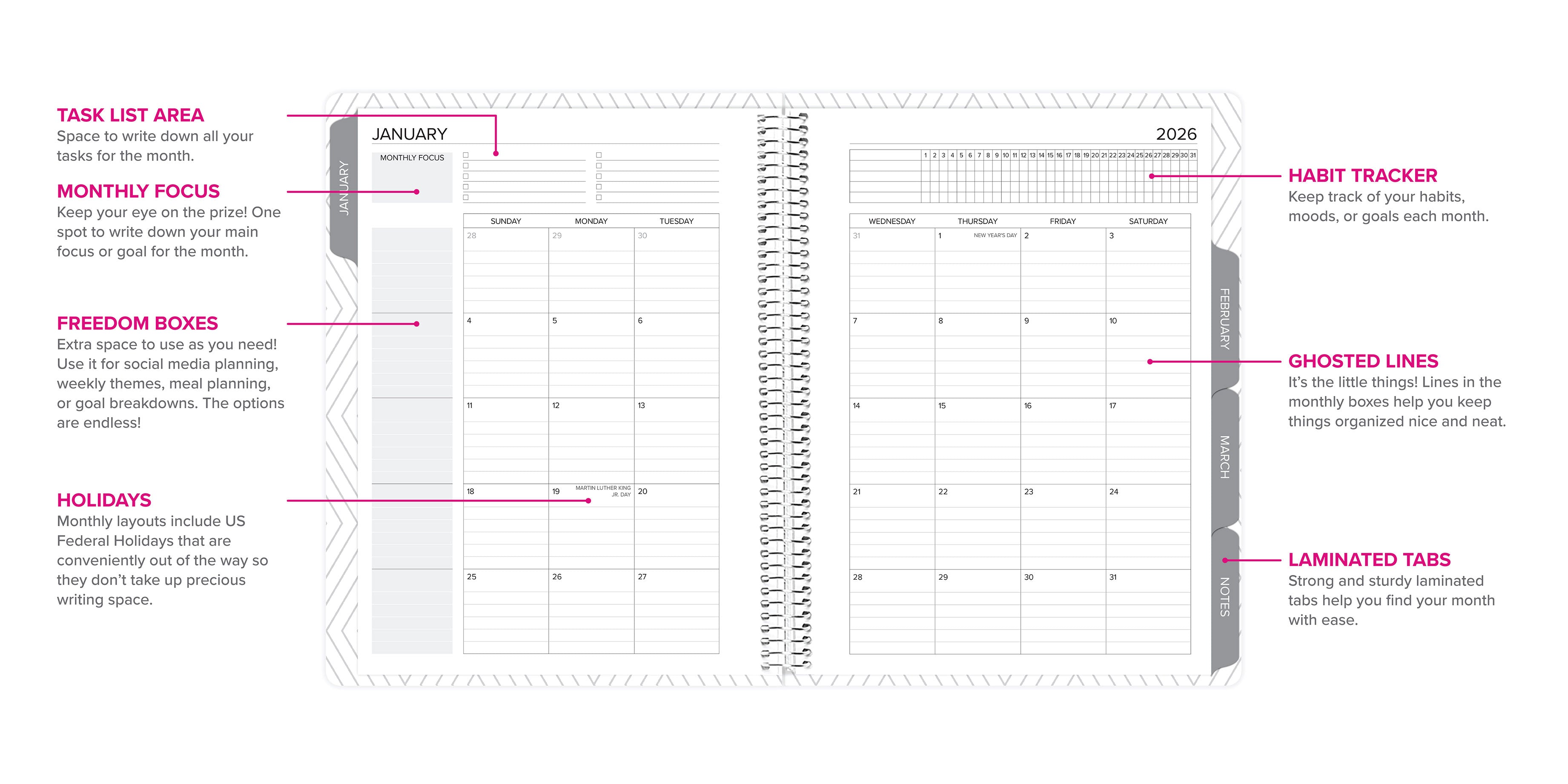 Made in the USA with durable, high-quality materials, this planner is built to accompany you through every meeting, brainstorm, and moment of calm this quarter brings.